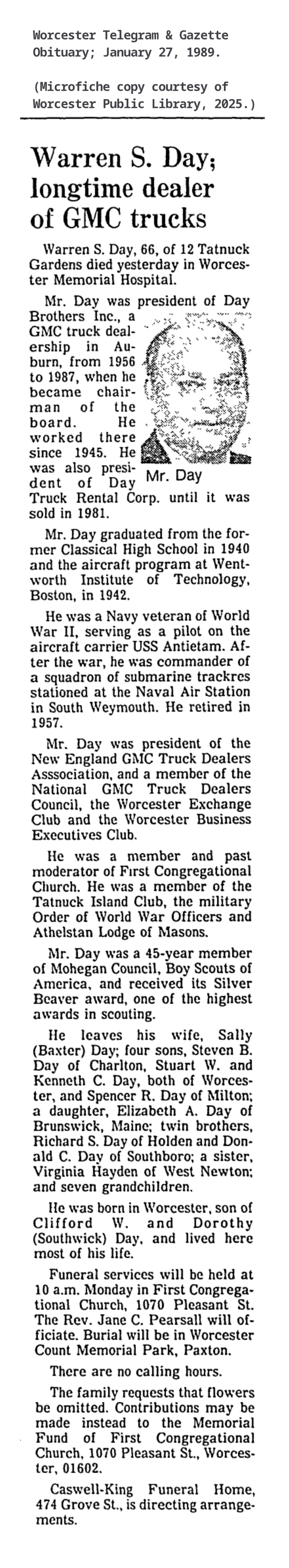 Obituaries » WARREN S DAY